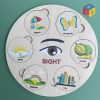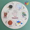 Mỗi loại giáo cụ được thiết kế để tập trung phát triển một hoặc nhiều giác quan cụ thể. Ví dụ, những đồ chơi có màu sắc rực rỡ sẽ thu hút và kích thích thị giác của trẻ; các đồ chơi phát ra âm thanh giúp phát triển thính giác; hoặc các giáo cụ với bề mặt khác nhau giúp trẻ cảm nhận và phát triển xúc giác.